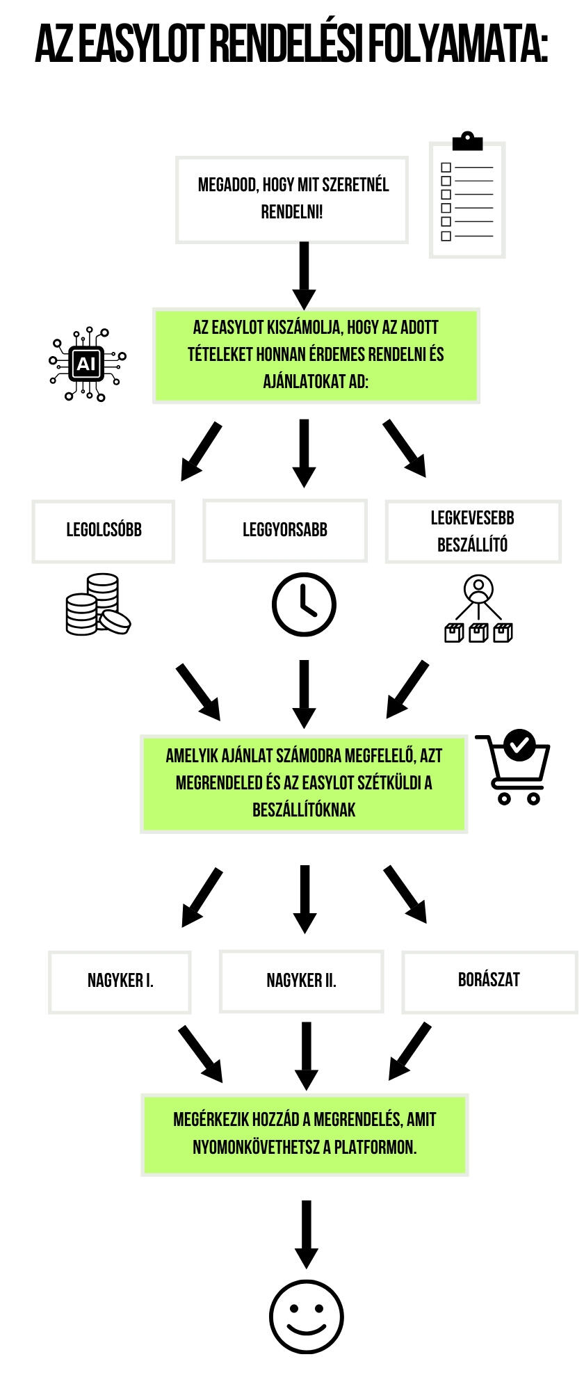 Az Easylot platformja egyedülálló, mesterséges intelligencia alapú technológiával segít, hogy gyorsabban, egyszerűbben és költséghatékonyabban intézhesd az italbeszerzéseidet. Csatlakozz több mint 350 beszállító kínálatához és több mint 6000 termékhez, hogy azonnal megtaláld, amire szükséged van.